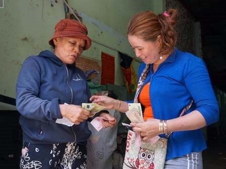 Chị Hồng giờ đây đã làm bà chủ vựa ve chai, cưu mang 20 người nghèo khó. Chị cũng học để biết chữ, tính tiền, xài zalo, facebook làm ăn.