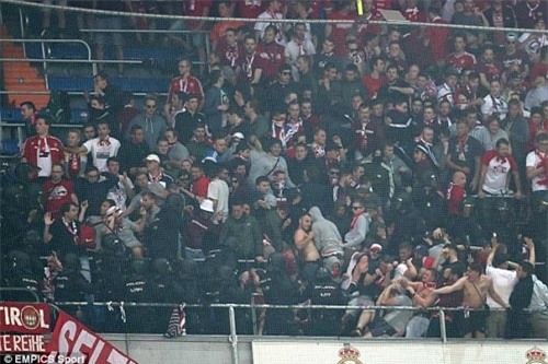 | CĐV Bayern và cảnh sát đụng độ trên khán đài |