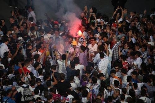 Về phía CĐV Real Madrid, đương nhiên họ lại có dịp mở hội. Bên ngoài sân Bernabeu, hàng trăm nghìn madridista tụ tập chờ xe bus chở Ronaldo và các đồng đội đi ra để hò hét, tung hô, ăn mừng như thế đội bóng vừa đoạt chức vô địch vậy.