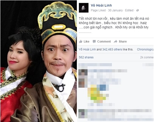 Hoài Linh còn mắng yêu Khởi My là “con gái ngỗ nghịch” vì “kêu làm mứt ăn tết mà nó không biết làm, bảo học thì không học.”