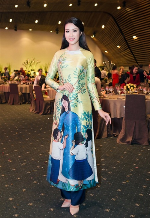 Trong một sự kiện kế tiếp,Hoa hậu Mỹ Linh để tóc xõa tự nhiên và trang điểm tông