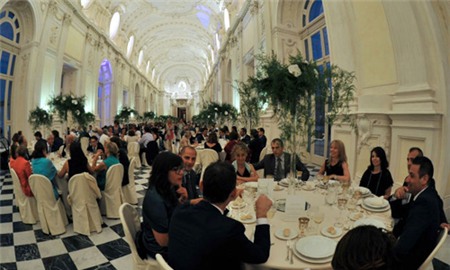| Vợ chồng HLV Conte chụp ảnh cùng vợ chồng Chủ tịch Juve, Andrea Agnelli và bà xã Emma Winter. |