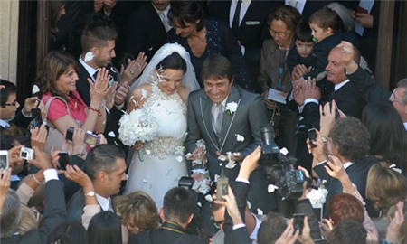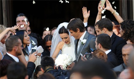 | Cô dâu chú rể bước ra khỏi nhà thờ trong tiếng vỗ tay reo hò của bạn bè, quan khách và các tifosi Juve. |