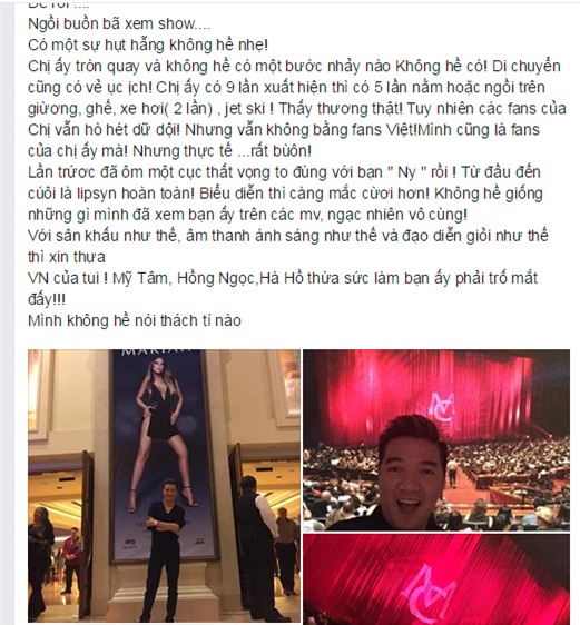 giới đã chỉ trích anh. Thậm chí, ngay cả fan của Mỹ Tâm hay Hồ Ngọc Hà