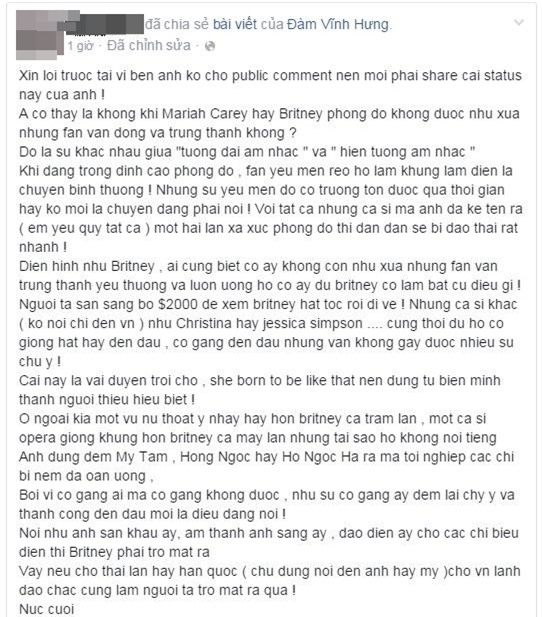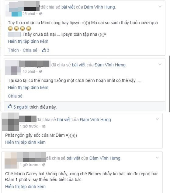 Sau khi Đàm Vĩnh Hưng chia sẻ trên mạng xã hội những suy nghĩ của mình, cộng đồng fan của Mariah Carey và Britney Spears đã có những phản ứng dữ dội.