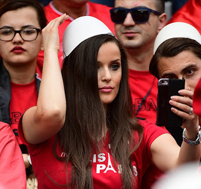 Không ai khác, fan girl đến từ Albania sở hữu vẻ nóng bỏng rực lửa trên khán đài.