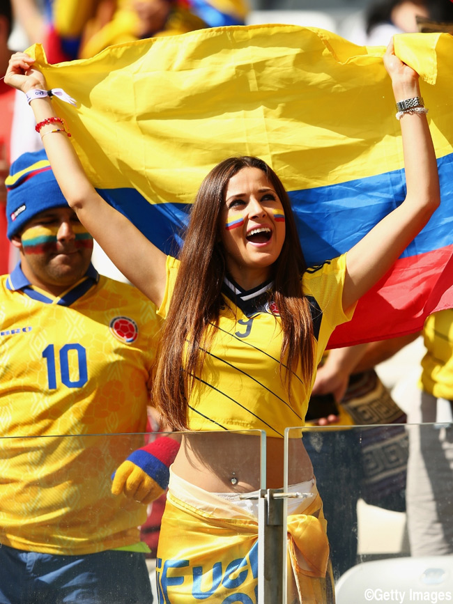 Cổ động viên Colombia với sắc vàng rực cùng lá cờ của quốc gia.