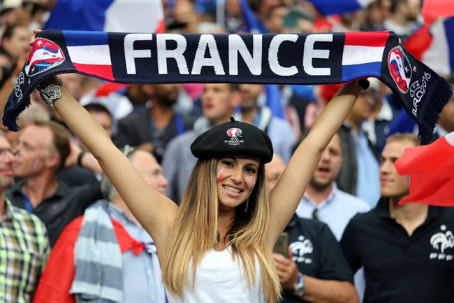 Gương mặt xinh đẹp của fan Pháp làm khán đài thêm nóng.