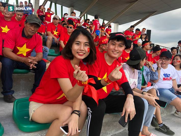 Lúc này đã có rất đông CĐV Việt Nam có mặt tại sân Binan, sẵn sàng tiếp lửa cho thầy trò HLV Park Hang-seo chiến đấu với U22 Thái Lan.