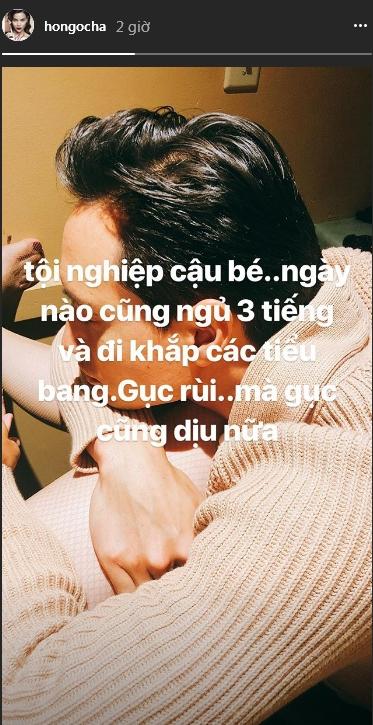 Đính kèm khoảnh khắc yêu thương, ca sĩ gốc Quảng Bình bộc bạch suy tư: "Tội nghiệp cậu bé, ngày nào cũng ngủ 3 tiếng và đi khắp các tiểu bang. Gục rồi mà gục cũng dịu nữa".