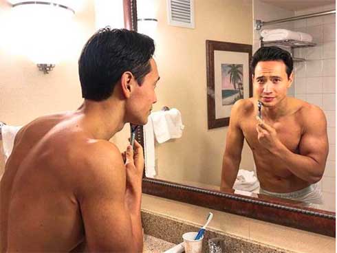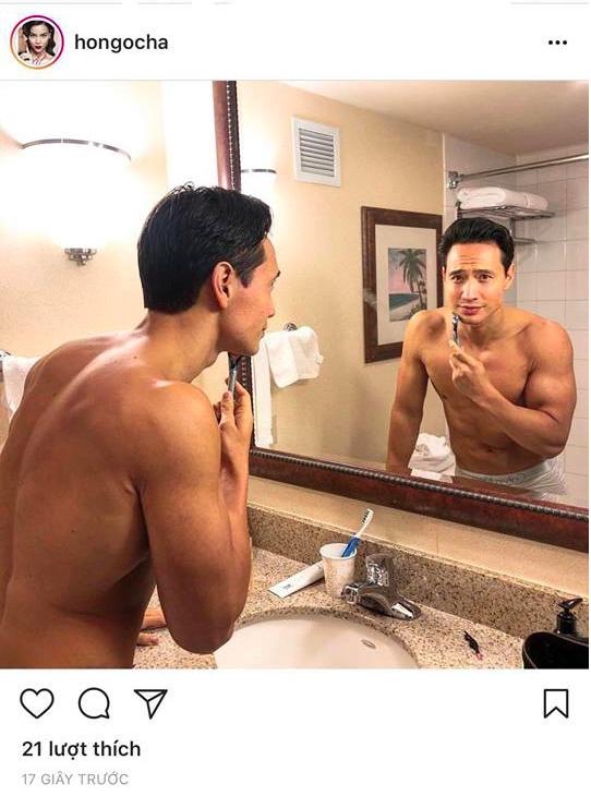 Bên cạnh loạt ảnh chính mình, nữ ca sĩ Cả một trời thương nhớ bất ngờ chia sẻ khoảnh khắc nhạy cảm bán nude trong phòng tắm của Kim Lý. Đây cũng là hình ảnh trước đó được nam diễn viên Việt kiều đăng công khai trên Facebook với lời chú thích: "Good morning Texas".