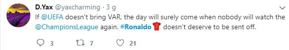 Nếu UEFA không sử dụng VAR, rồi sẽ đến ngày chẳng ai muốn xem Champions League nữa. Ronaldo không đáng bị đuổi.