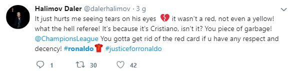 Tôi đau lòng khi thấy Ronaldo khóc. Đó không thể là thẻ đỏ, thậm chí là thẻ vàng. Tại sao vậy trọng tài?
