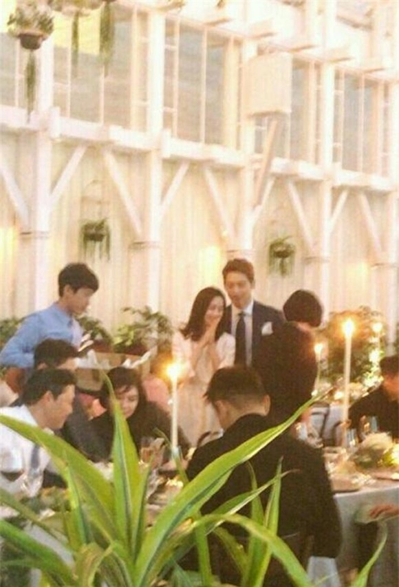 Mới đây, một vài khoảnh khắc tiệc cưới hiếm hoi của cặp đôi quyền lực này lần đầu được công khai. Trong ảnh Kim Tae Hee vui vẻ và Rain luôn theo sát vợ. Cặp đôi đang đi chào hỏi và đón khách. Mỹ nhân xứ Hàn nở nụ cười ngọt ngào, cả hai thể hiện sự hạnh phúc tràn ngập trên gương mặt.