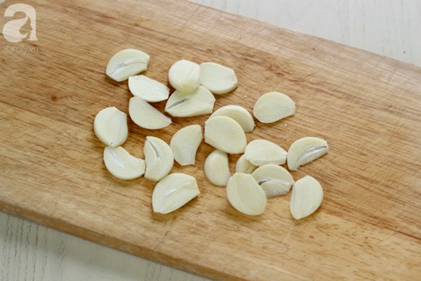 - Bước 2: Tỏi lột vỏ, cắt lát mỏng.