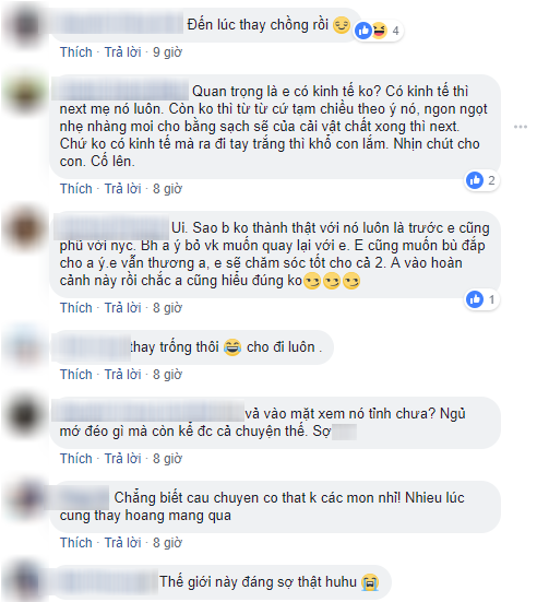 "Tối hôm qua em nằm em nói chuyện này với chồng, em đề nghị chồng chọn vợ con hay là người yêu cũ, thì hắn nói muốn ở bên cả 2. Hắn không muốn làm 1 trong 2 phải buồn".