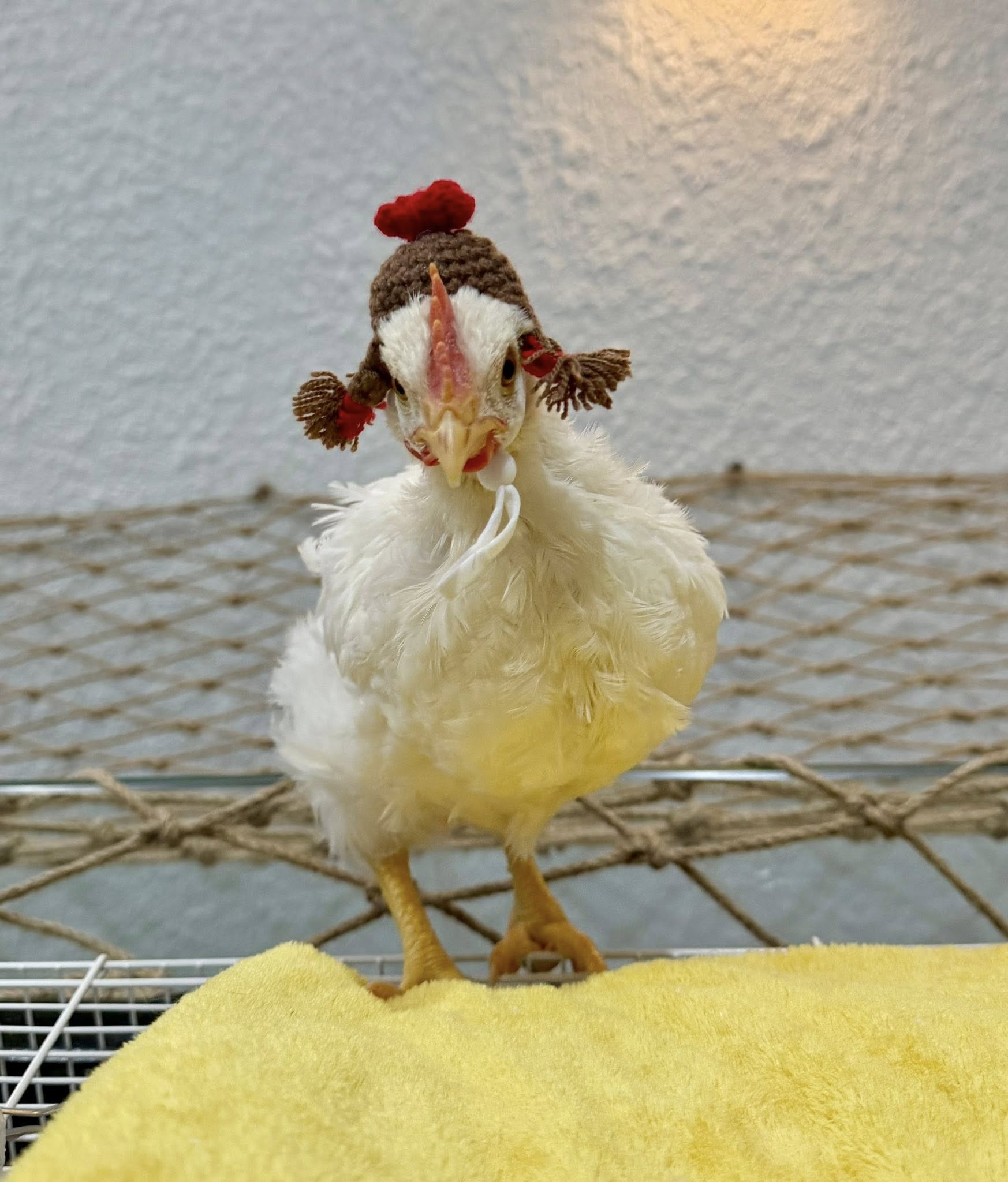 Con gà đi lạc được nuôi tại tiệm cà phê ở TPHCM và được đặt tên là Jolibee