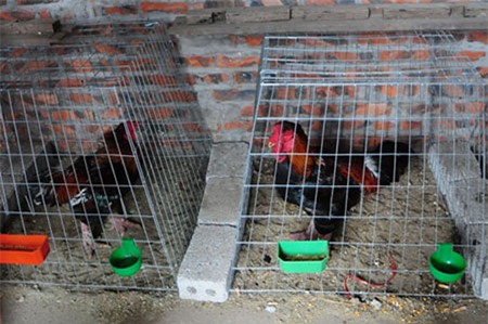 Gà khách đặt làm quà biếu Tết được anh Hiểu nuôi nhốt riêng và chăm sóc theo chế độ riêng. |
