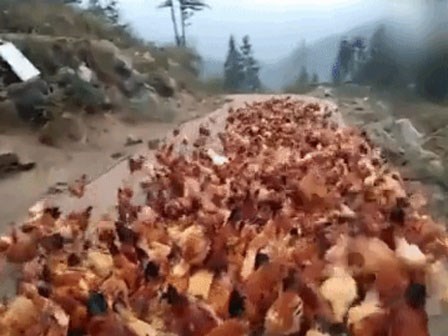 Kinh ngạc đàn gà bay vèo vèo như chim mỗi khi nghe thấy tiếng còi
