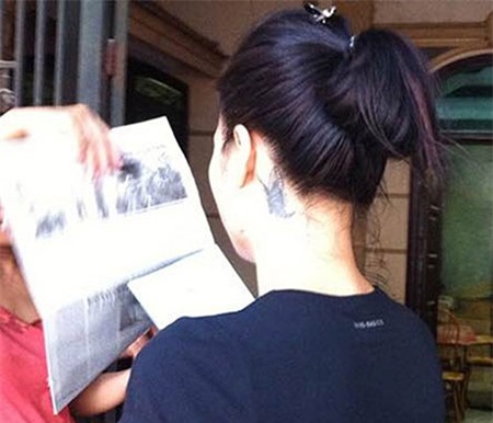Nạn nhân Ngọc Ly may mắn thoát chết nhờ bộ tóc giả. |