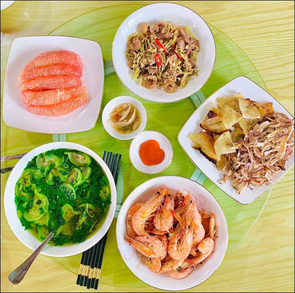 Giang Hương làm việc ở thành phố nên cứ cuối tuần hay có dịp rảnh là cô lại về quê thăm bố mẹ và tự tay vào bếp nấu nhiều món ăn ngon để gia đình quây quần bên mâm cơm ấm cúng. Cô bạn 9x chia sẻ: "Em muốn khoe với các chị mâm cơm em nấu. Vài gợi ý cho các mom đi chợ đỡ phải nghĩ nhiều ạ. Em thích nấu ăn lắm mà khổ nỗi đi làm ở một mình nấu chả ai ăn. Cứ về nhà mới có dịp được vào bếp. Có bữa có khách nên em nấu hơi nhiều, với nhà em ở quê, hôm nào chịu khó mua đồ dưới thành phố về thì có món hay ho chứ không cứ loanh quanh thịt ba chỉ".