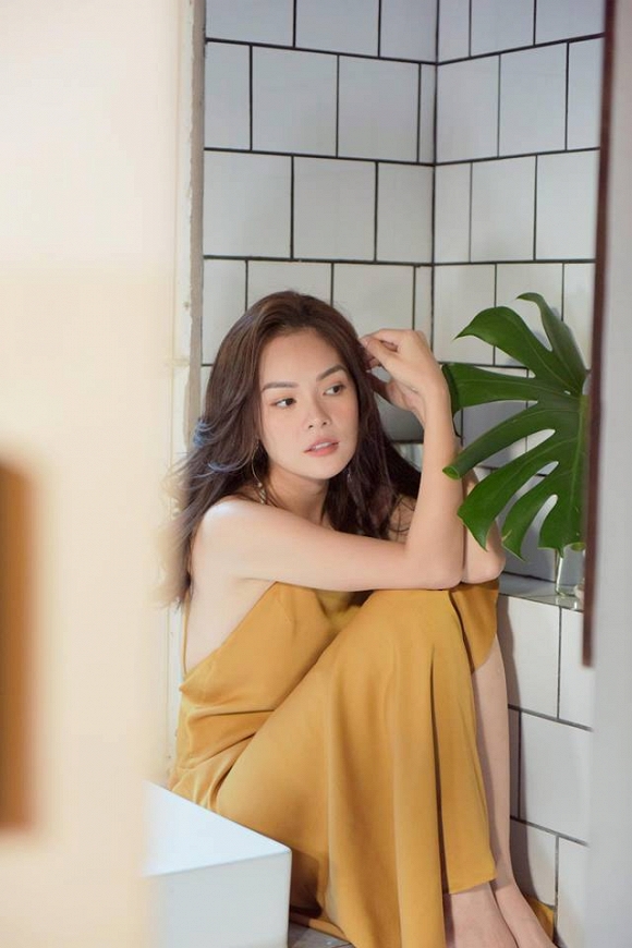 Với loạt ảnh diện đầm 2 dây gam vàng dưới đây, Dương Cẩm Lynh thật đẹp với biểu cảm tự nhiên, gương mặt thanh thoát cùng bờ vai trần gợi cảm.