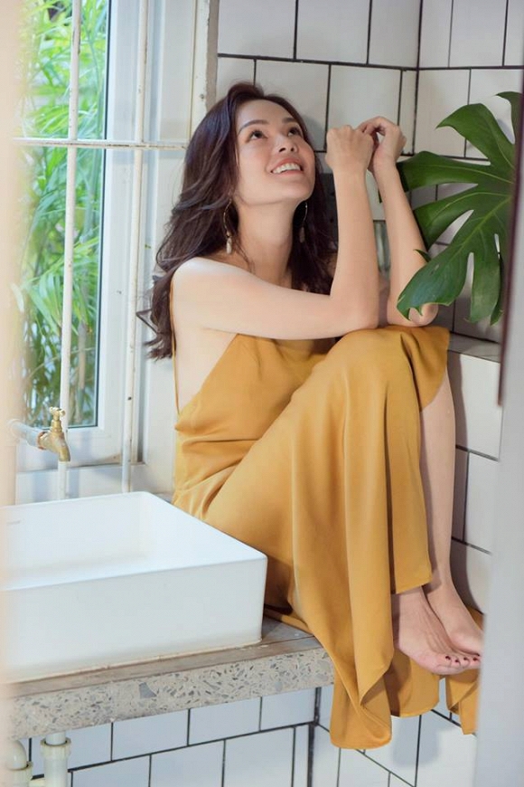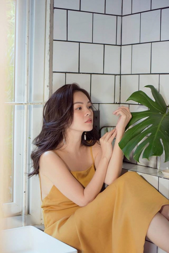Với loạt ảnh diện đầm 2 dây gam vàng dưới đây, 'Bà mẹ một con' Dương Cẩm Lynh thật đẹp với biểu cảm tự nhiên, gương mặt thanh thoát cùng bờ vai trần gợi cảm.