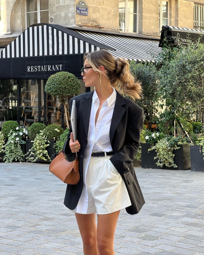 Thu đến, áo blazer được gái Pháp chuộng hơn bao giờ hết. Thay vì lựa chọn những thiết kế ôm sát, chiết eo hay họa tiết cách điệu, những cô nàng sành điệu nơi này dành tình cảm cho kiểu blazer dáng rộng, với những gam màu trung tính. Với mẫu áo này, họ thỏa sức biến tấu và kết hợp với nhiều loại trang phục khác nhau như: Quần jeans, quần ống rộng, chân váy ngắn, quần short hay váy hoa... Hầu hết các sự mix match này đều mang đến cho phụ nữ Pháp nét trẻ trung, phóng khoáng mà vẫn đảm bảo sự thanh lịch, sành điệu.