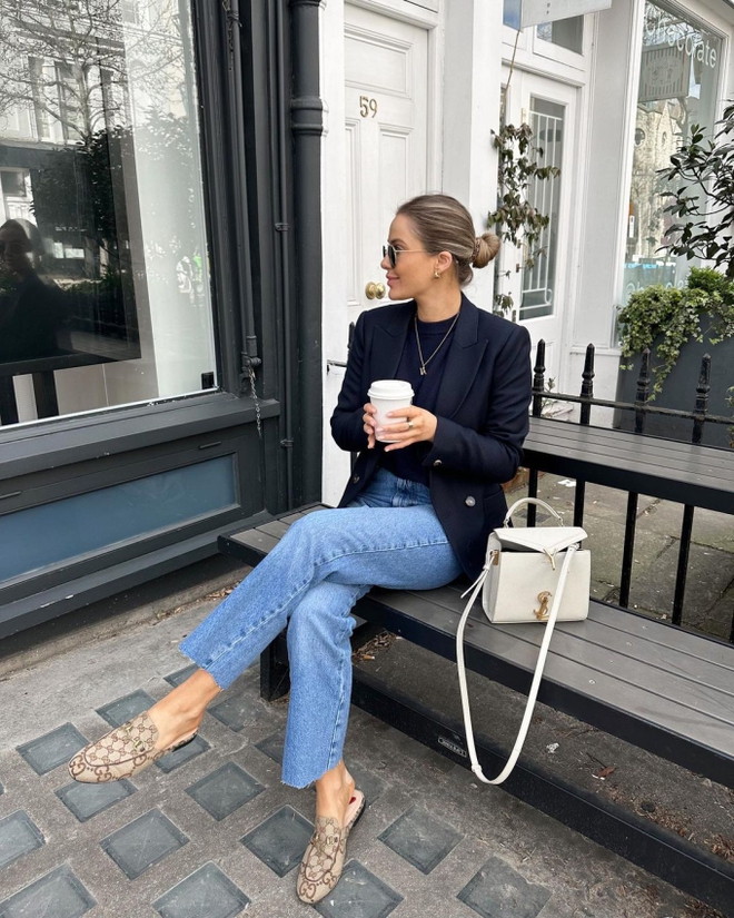 Không chỉ được diện trong mùa thu, quần jeans ống rộng/ống đứng được phụ nữ Pháp diện quanh năm mà không biết chán. Quần jeans ống rộng hay ống đứng đều là món đồ vô cùng "dễ tính" và dễ kết hợp. Ngay cả khi bạn là cô nàng lười phối đồ, thì chỉ cần xỏ quần jeans cùng áo thun, rồi khoác thêm bên ngoài một chiếc blazer hoặc cardigan... là có ngay outfit tuy basic nhưng đảm bảo chẳng bao giờ bị chê xấu.