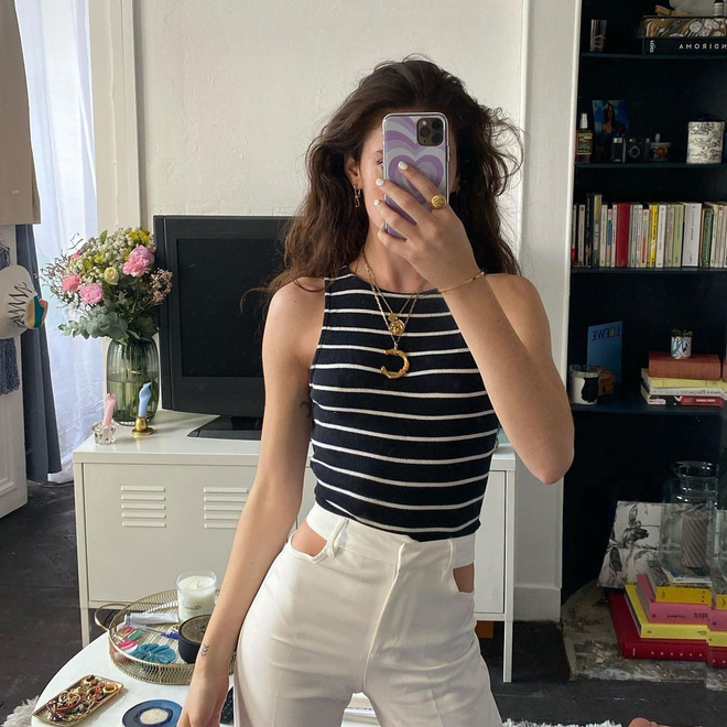 Tầm này thì ai cưỡng lại được áo dây, tank top đúng không? Áo dây + jeans ống loe lửng + túi cói/đan mây + sandal cao gót chắc chắn sẽ cho bạn diện mạo chuẩn style gái Pháp. Còn combo tank top, sơ mi rộng khoác ngoài và jeans ống đứng thì quá đình đám mỗi mùa hè rồi