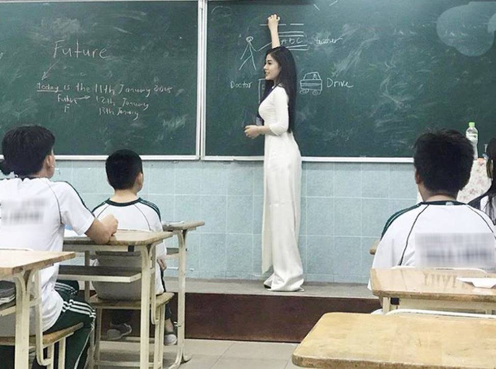 Đầu năm 2018, hình ảnh một nữ giáo viên dạy tiếng Anh được cộng động mạng Việt đua nhau chia sẻ. Cô nàng được khen ngợi hết lời khi sở hữu gương mặt xinh đẹp và vóc dáng thon thả, nuột nà.