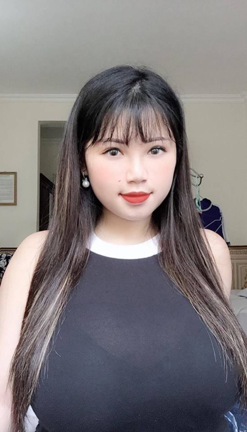Võ Thị Thu Trang (sinh năm 2000, Hải Dương) nổi tiếng mạng xã hội khi sở hữu vòng 1 "khủng" với số đo 110cm.