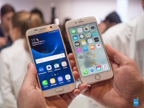 Cận cảnh Galaxy S7 đọ dáng cùng iPhone 6S (Hình: Phonearena) |