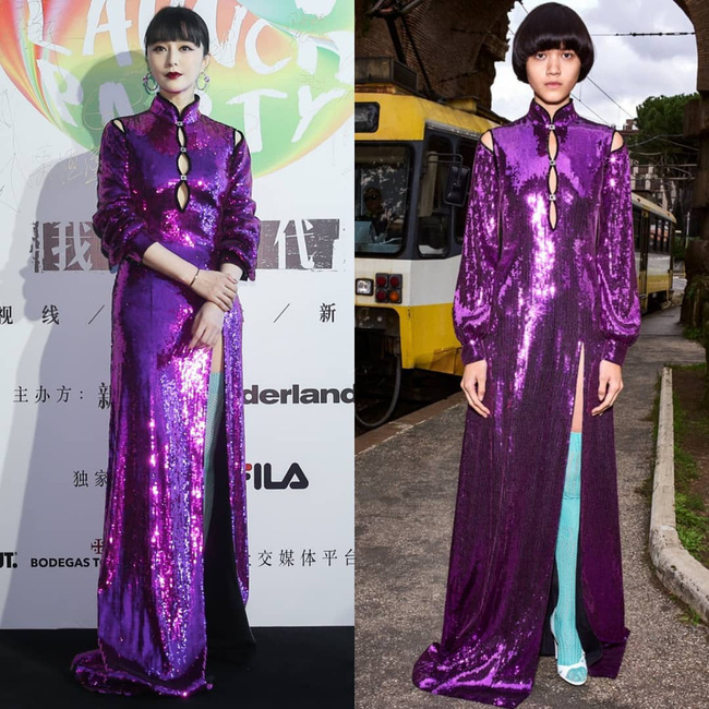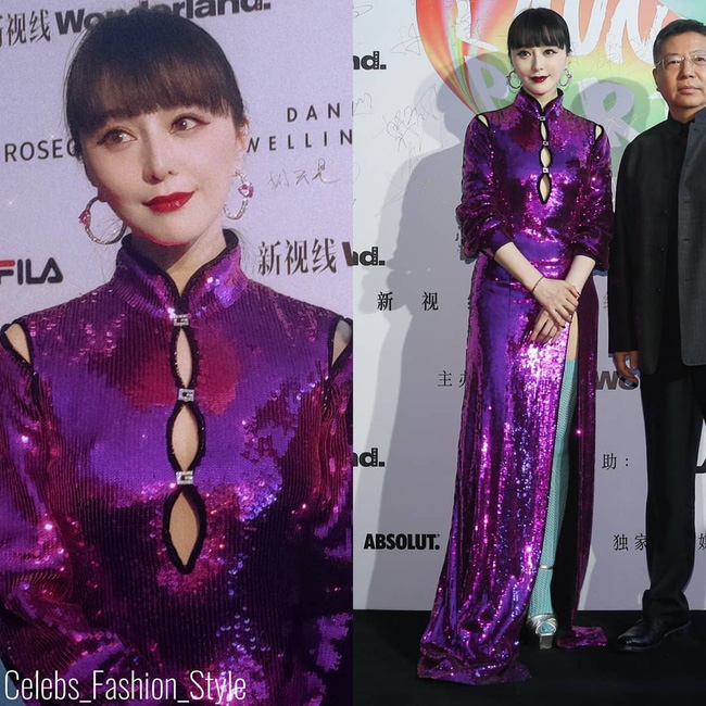 Trong sự kiện mới đây nhất, Phạm Băng Băng bất ngờ xuất hiện trong bộ váy tím sequin mang phong cách hơi sườn xám của nhà mốt Gucci. Đây cũng là set đồ nằm trong BST mới nhất của hãng.