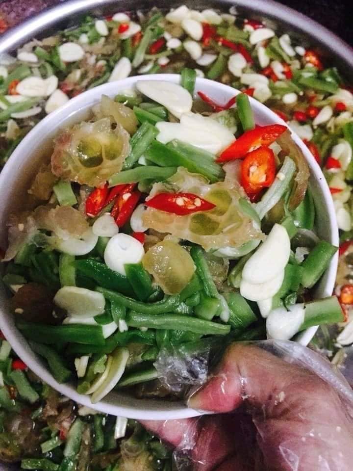 Theo người phụ nữ này, gân bò muối rau tiến vua làm khá đơn giản với những gia vị thường ngày cộng với nguyên liệu chính là gân bò và rau tiến vua khô, tỏi, ớt, gừng, tương ớt, làm theo các bước sau: