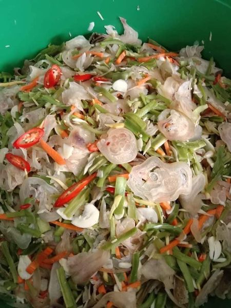 Chị Yến chuyên bán thực phẩm online ở Ngã Tư Sở kể: "Những tháng cuối năm nhà mình tập trung bán thực phẩm truyền thống ngày Tết, trong đó chạy hàng nhất là gân bò muối rau tiến vua. Tết mọi nhà đều có nhiều đồ ăn, trong mâm cỗ có đĩa gân bò muối sẽ giúp đỡ cảm giác chán ngấy thức ăn. Để có đủ gân bò muối bán tháng Tết, nhà mình phải đặt mua nhiều mối, chọn gân bò tươi, đảm bảo chất lượng như thế khi muối, gân bò mới thơm ngon, giòn ngọt được".