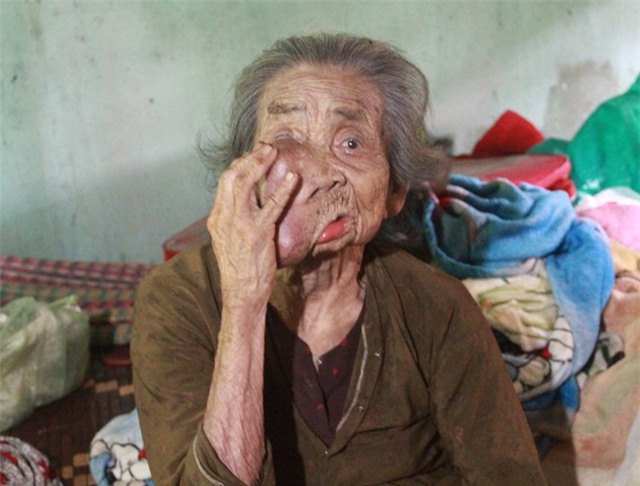 Cụ kể, hơn 10 năm trước khuôn mặt bắt đầu nổi một mụn nhọt nhỏ như đầu ngón tay. Vì không có tiền nên cụ không đi chữa trị. Đến nay cái mụt đã phát triển, khiến khuôn mặt cụ bị biến dạng với khối u “khổng lồt.