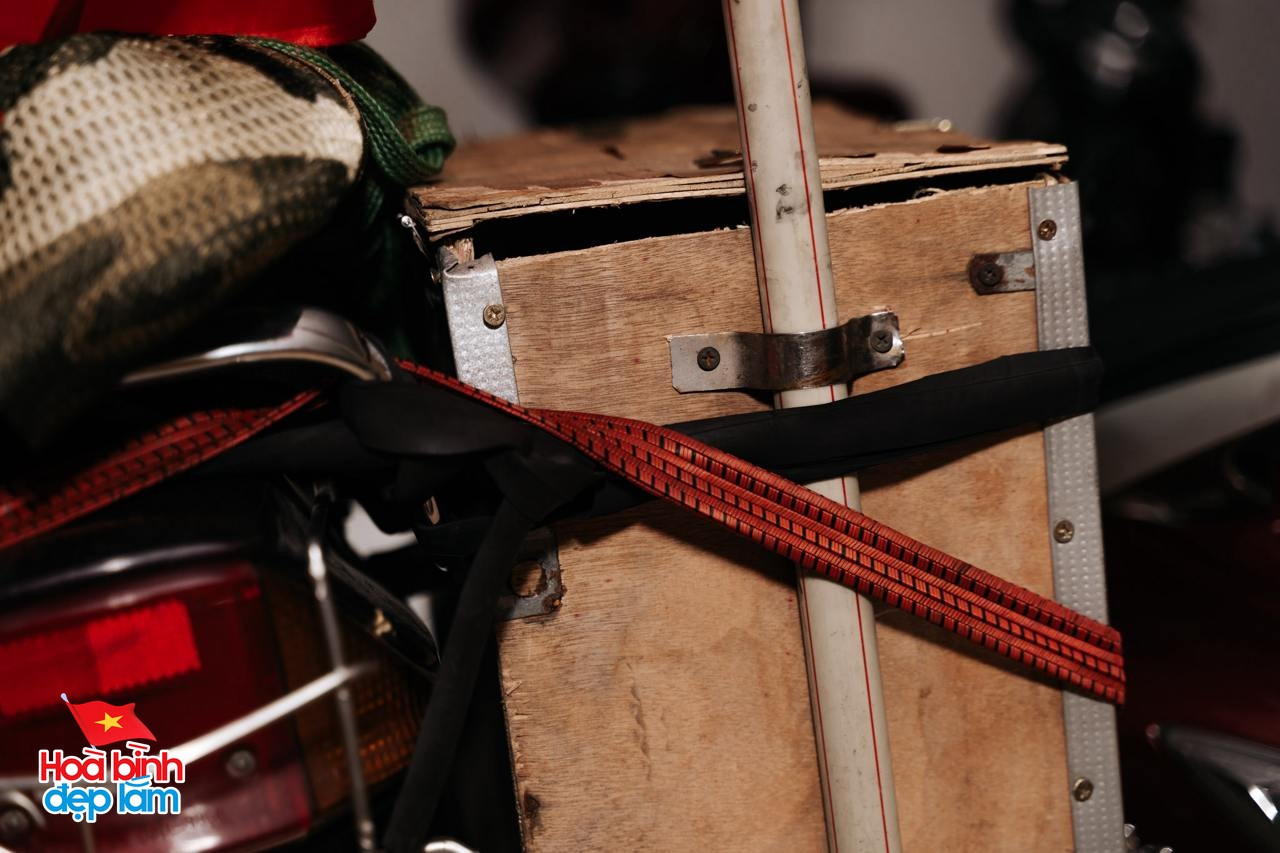 Hành trang của người cựu chiến binh chẳng có gì xa hoa: một chiếc võng, chiếc nồi nhỏ, vài gói mì tôm, nước uống và luôn có một lá cờ đỏ sao vàng được buộc trang trọng phía sau yên xe.
