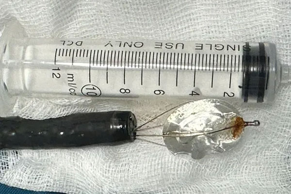 Qua chụp X-quang, siêu âm các bác sĩ xác định vị trí dị vật trong đường tiêu hóa. Ngay sau đó, bệnh nhi được chuyển đến Khoa Gây mê hồi sức để thực hiện thủ thuật gắp dị vật. Ekip nội soi đã gắp thành công dị vật kim loại được xác định là một chiếc đinh sắt dài 3 cm từ vị trí tá tràng ra khỏi cơ thể của bệnh nhi.