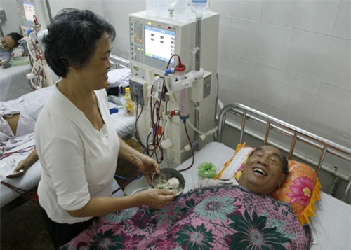 Thày cho biết, đã chạy thận và chống chọi với bệnh tật hơn 7 năm, còn người con trai thì hơn 6 năm. Bệnh viện sắp xếp hai cha con chạy thận cùng một ngày để bà Vũ Thị Đậu (vợ thày) tiện chăm sóc. Cứ một tuần 3 buổi, từ 10h - 13h thày lại cùng con trai đến BV chạy thận.