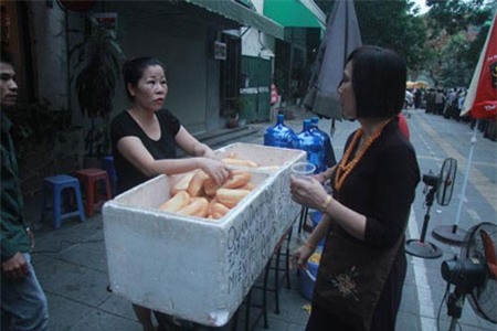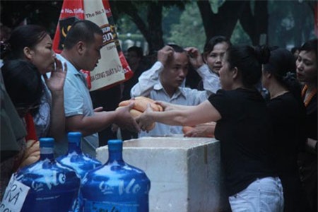 Chị Nguyễn Thị Hà (Từ Liêm – Hà Nội) cầm trên tay chiếc bánh mì mà nghẹn ngào: “Xếp hàng gần 3 tiếng nhưng được tới viếng Đại tướng là điều may mắn với tôi. Lòng tôi cảm thấy rất thanh thản và khi ăn chiếc bánh mì mà gia đình chị Thu cung cấp miễn phí lại càng thấy xúc động hơn. Đúng là làm việc ơn nghĩa vì mọi người, thật không biết nói sao cho hết tình cảm đáng quý này”.