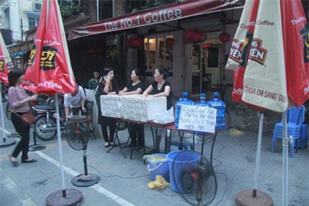 Tấm biển "Miễn phí nước uống, bánh mì” được đặt ngay bên vỉa hè khiến nhiều người không khỏi ngạc nhiên. Ban đầu cũng có người tỏ ra ngần ngại, thậm chí không tin nhưng dần dần nhiều người biết được tấm lòng thơm thảo của cô Thu.