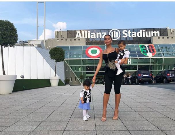 Hôm 16/9 Georgina đưa hai con sinh đôi của Ronaldo là Mateo và Eva đến sân Allianz. Cặp sinh đôi trông đáng yêu với đồng phục thi đấu của Juventus. Ngoài ra con trai lớn của Ronaldo là Junior cũng đi cùng.