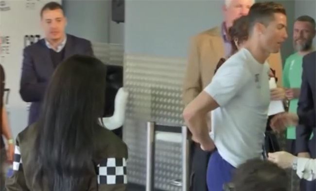 Trong khi Ronaldo đứng trên sân khấu để quảng bá phòng tập, bạn gái anh Georgina Rodriguez ngồi ngay ở hàng ghế đầu tiên. Người mẫu 22 tuổi luôn theo cạnh Ronaldo, từ lúc anh lên sân khấu cho tới khi ra về.