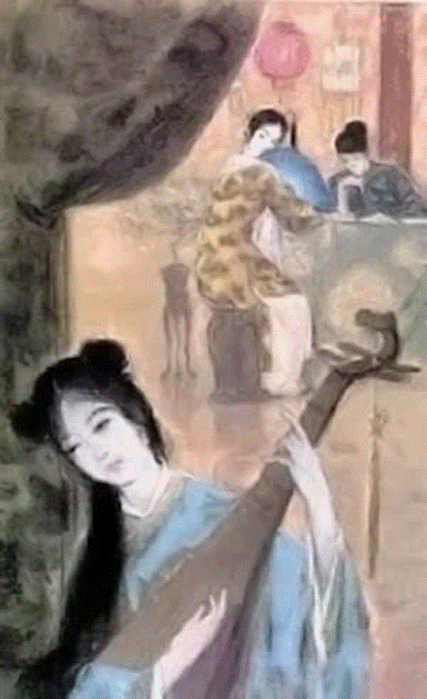 Tranh vẽ cảnh Thúy Kiều đàn cho Thúc Sinh và Hoạn Thư