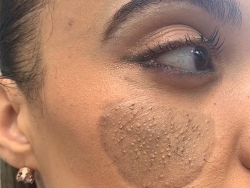Mảng da trên khuôn mặt của Crystal được cấy ghép từ vùng kín. Sau khi vết thương lành, vùng da này bỗng nhiên đen sạm, mọc lên những sợi lông cứng.