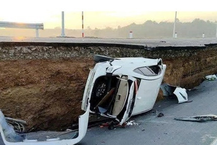 Hố sụt lún ước tính đường kính khoảng hơn 9m, khoét sâu vào bên trong móng nhà kiên cố khoảng 1,5m.