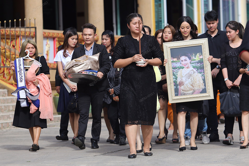 Theo Siamdara, chiều 8/11, lễ cầu nguyện và hỏa táng Á hậu Thái Lan 2005 Nursara Suknamai được tổ chức tại một ngôi chùa ở Khlong Luang, tỉnh Pathum Thani. Mẹ Nursara Suknamai là người khóc nhiều nhất trong ngày tiễn đưa con gái.