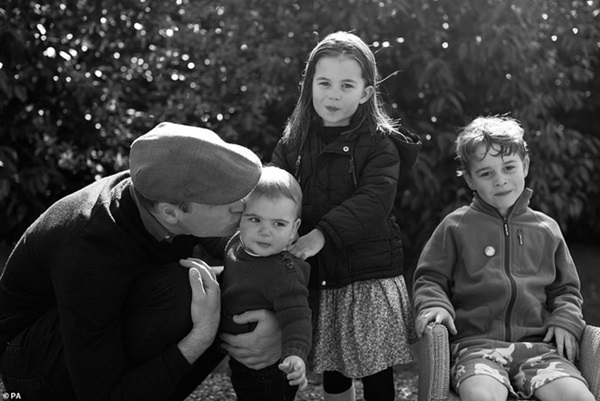 Theo đó, đây là bức hình đen trắng cho thấy Công tước xứ Cambridge đội mũ, cúi xuống hôn má con trai út Louis trong khi Công chúa Charlotte và Hoàng tử George nhìn về phía máy ảnh. Đính kèm với bức ảnh là lời chúc mừng Giáng sinh và tiết lộ rằng đây là bức hình do chính Công nương Kate chụp cho 4 cha con, do đó mà cô không xuất hiện trong bức hình.