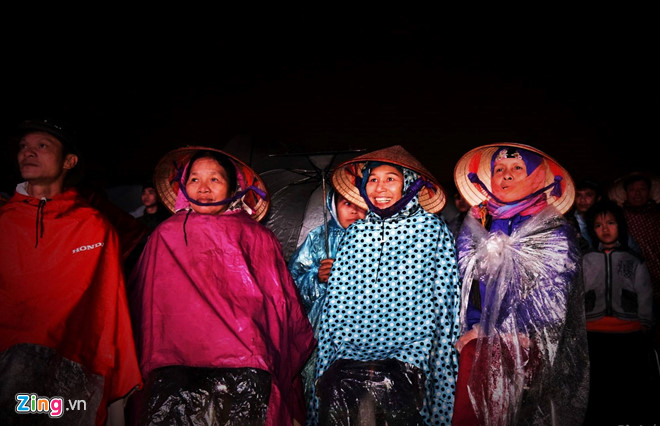 Cổ động viên dầm mưa bên ngoài nhà cầu thủ Quang Hải để cổ vũ cho đội tuyển Việt Nam trong giải AFF vừa qua. Ảnh: Ngọc Tân.